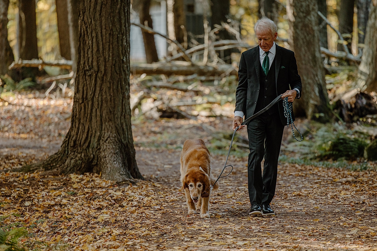Next, when thinking about how to include pets in your elopement: plan to bring a friend or family member who can help. Even the best-behaved pets can get distracted. Having someone there to handle leashes, treats, or breaks lets you stay present during your ceremony and portraits.